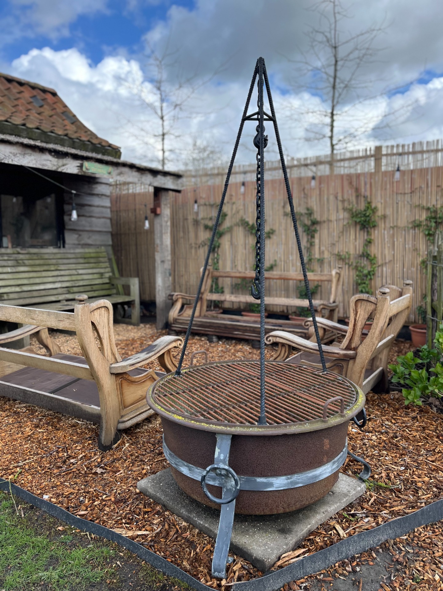 maak je graag gebruik van onze authentieke firepit met 3 pikkel en haak met ketting? Dan kan dit voor een meerprijs van 50€